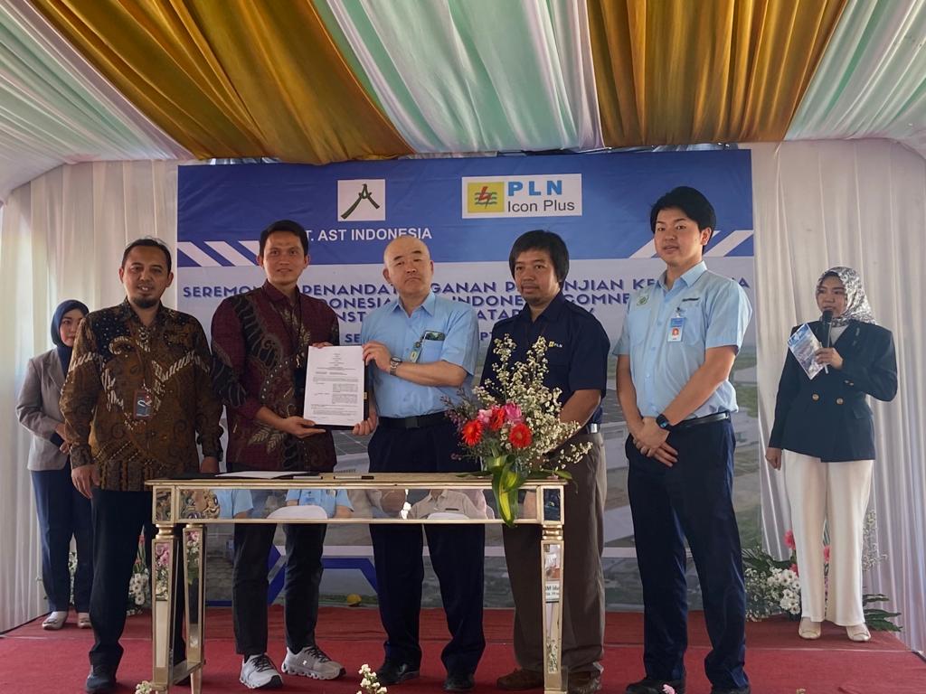 Pembangunan PLTS Atap oleh PLN Icon Plus untuk PT AST Indonesia ini ditandai dengan penandatanganan kesepakatan kerjasama antara PLN Icon Plus dengan PT AST Indonesia, Selasa (26/9) di Semarang. Penandatanganan dilakukan oleh Senior Manager PLN Icon Plus Regional Jawa Bagian Tengah, Deri Prasetio Utomo dengan Presiden Direktur PT AST Indonesia, Hiroyuki Miyazaki. Hadir menyaksikan Direktur Utama PLN Icon Plus, Ari Rahmat Indra Cahyadi, GM PLN UID Jawa Tengah & DIY, M. Soffin Hadi yang diwakili Manajer PLN UP3 Semarang, Suparje Wardiyono.