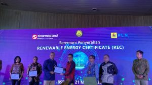 | Ceremony penyerahan Renewable Energy Certificate (REC) dengan Sinarmas Land. FOTO DOK PLN |