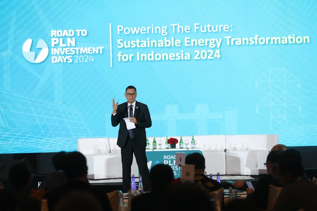 Direktur Utama PLN Darmawan Prasodjo saat menyampaikan sambutan pembuka acara Road to PLN Investment Days 2024 yang digelar di Jakarta, Rabu (06/03). Dalam acara tersebut, Darmawan mengajak para pemangku kepentingan dalam dan luar negeri di sektor energi untuk berkolaborasi melakukan transisi energi, baik pada aspek teknologi, inovasi maupun investasi. FOTO DOK PLN